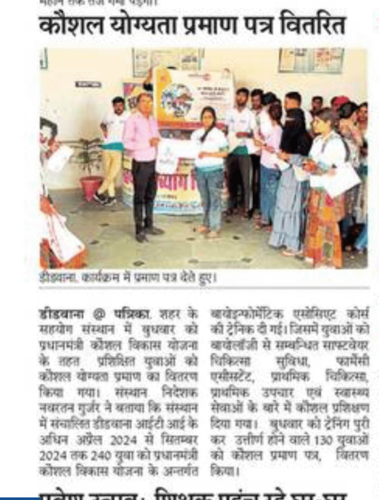 The institution has provided self-employment opportunities to Scheduled Castes, minorities, persons with disabilities, youth, and women through skill training. This training has included tailoring, embroidery and weaving, beauty technician training, medical assistant training, and electrician training for women.