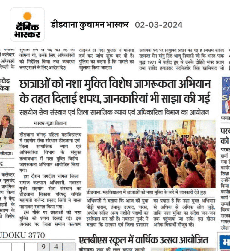A Social Awareness Center has been established in Didwana district under the auspices of the organization.